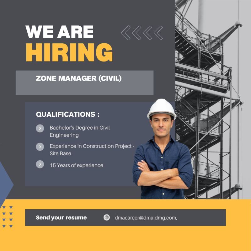 تبحث شركة DMA عن مدير منطقة (هندسة مدنية) يتمتع بخبرة قوية في مواقع المشاريع الميدانية.