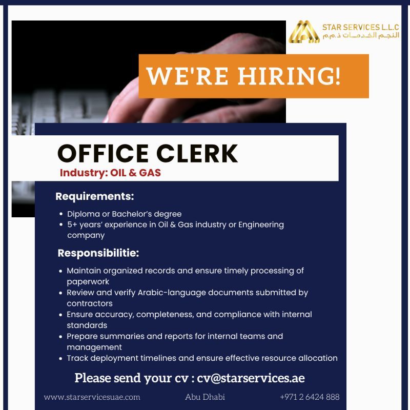 شركة Star Services L.L.C في أبوظبي تعلن عن توفر وظيفة: