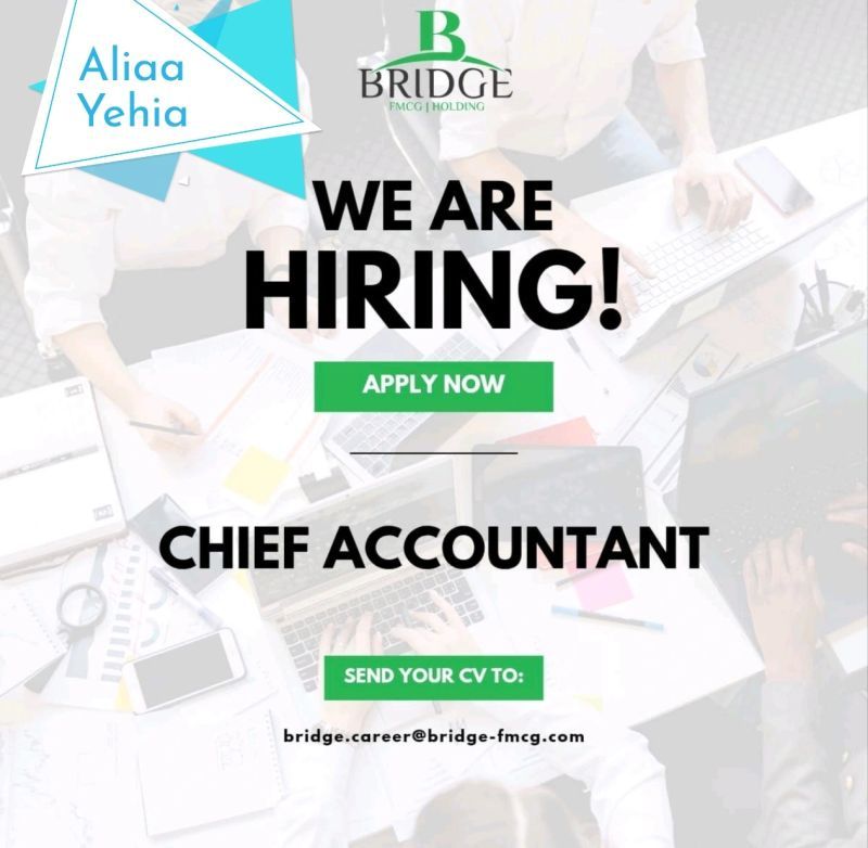 تعلن Bridge FMCG Holding عن رغبتها في تعيين رئيس حسابات يتمتع بخبرة مهنية في المحاسبة وإعداد التقارير المالية داخل بيئة عمل احترافية.