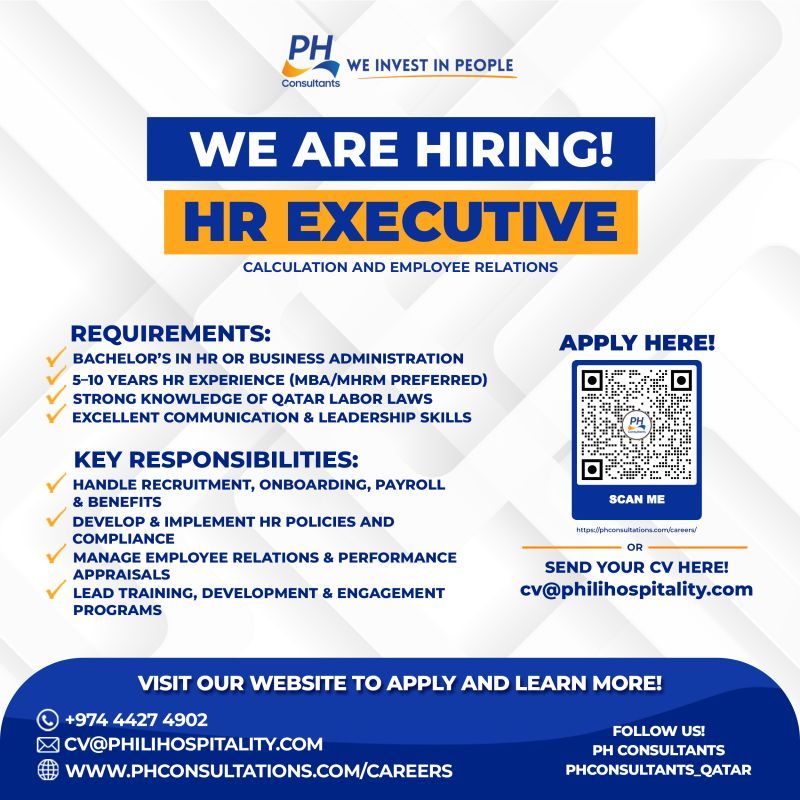 وظيفة HR Executive في قطر – خبرة 5–10 سنوات في العلاقات العمالية وإدارة شؤون الموظفين