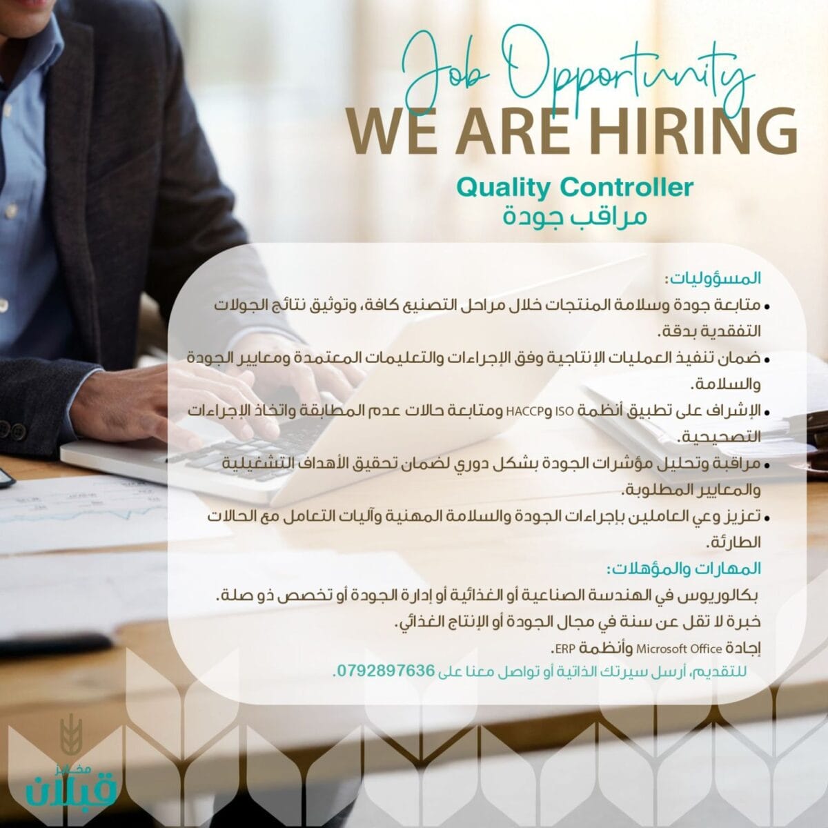 فرصة عمل: مطلوب مراقب جودة في شركة قبلان للصناعات الغذائية | وظائف اليوم وفرص عمل 2025