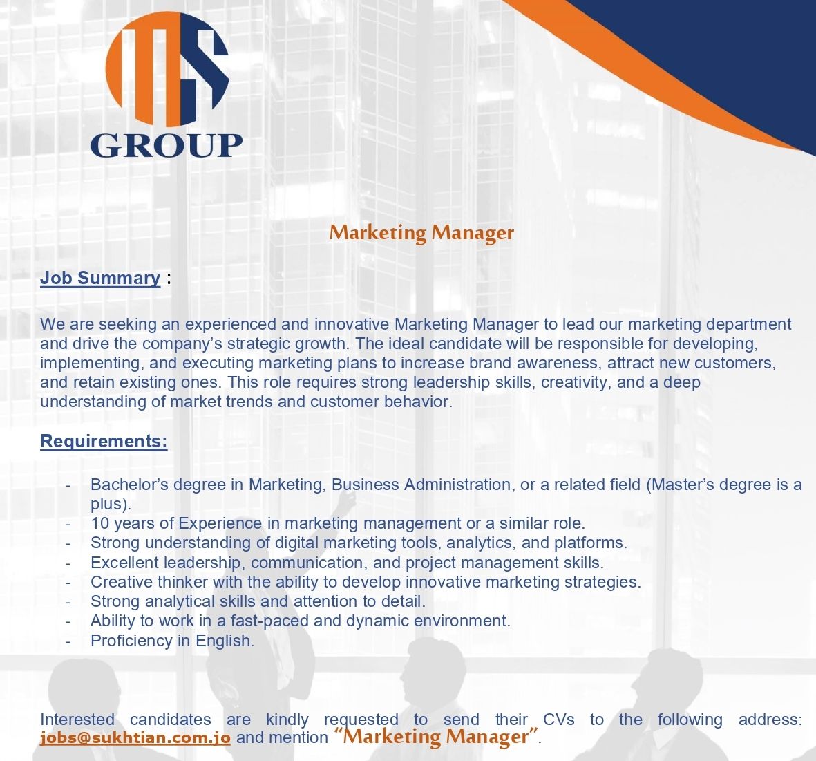 مطلوب Marketing Manager – وظائف اليوم وفرص عمل 2025