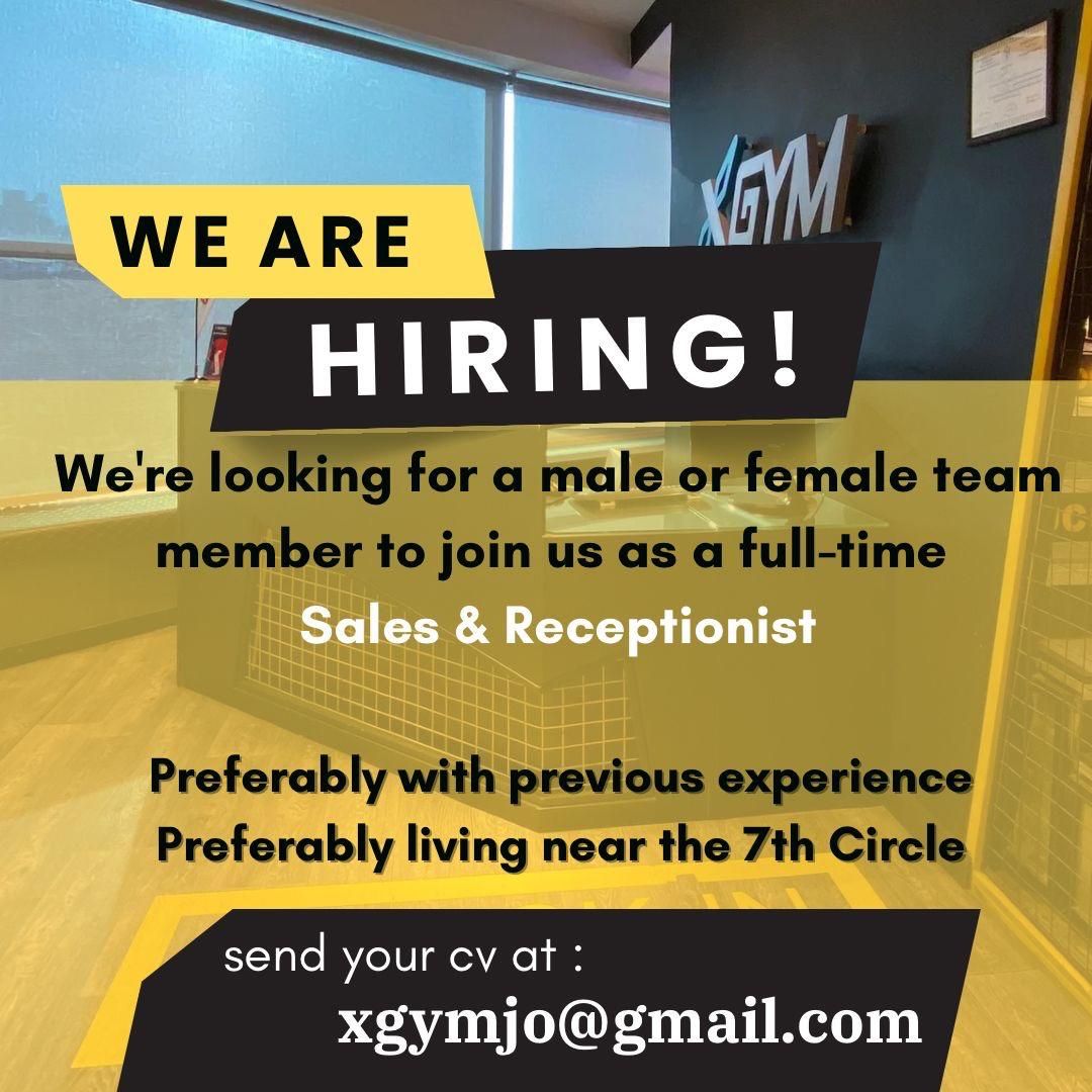 وظائف مبيعات واستقبال في XGym عمّان 2025