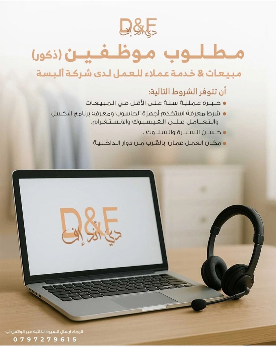 مطلوب موظفين مبيعات وخدمة عملاء (ذكور) في عمّان – وظائف اليوم وفرص عمل 2025