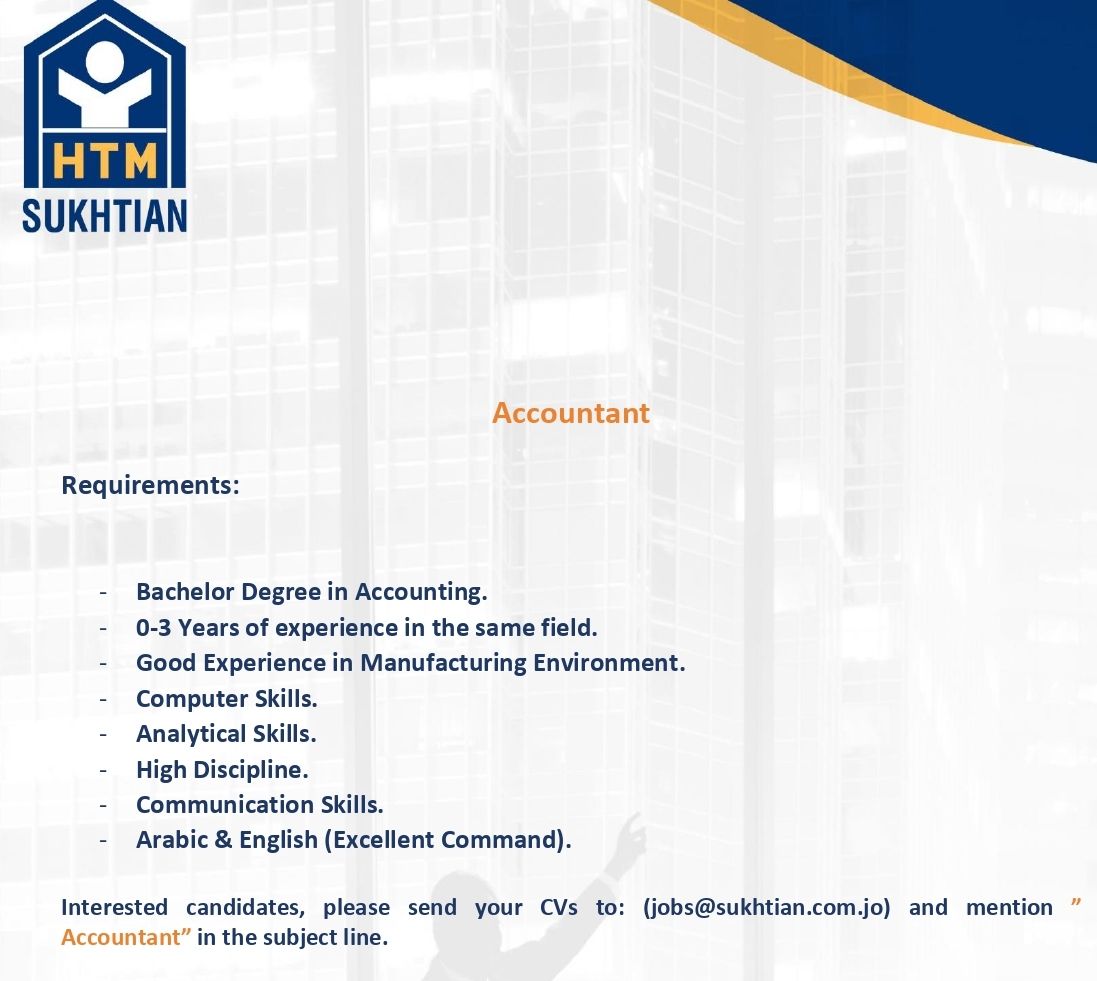 مطلوب محاسب للعمل في شركة صناعية كبرى في الأردن، وتُعد هذه الفرصة من أبرز وظائف محاسبين حديثي التخرج 2025 وواحدة من أكثر وظائف اليوم بحثًا في مجال المحاسبة.