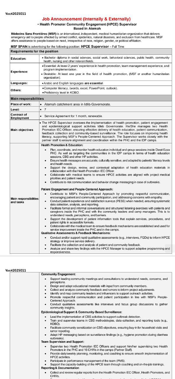 6. مشرف مشاركة مجتمعية (HPCE Supervisor) – إدلب/أطمة