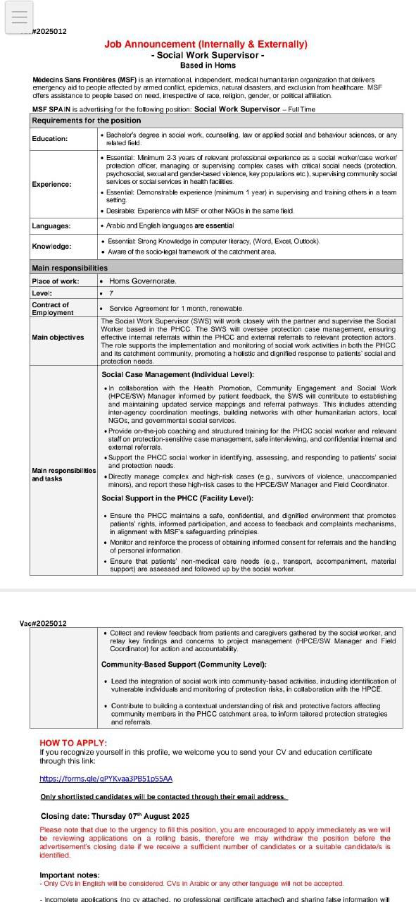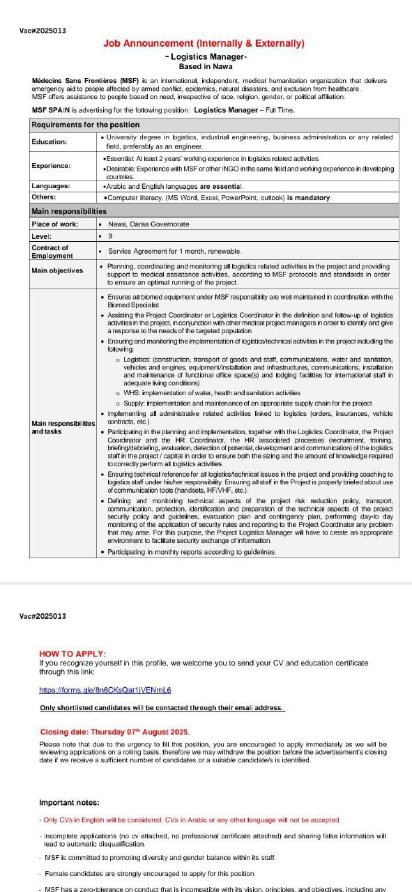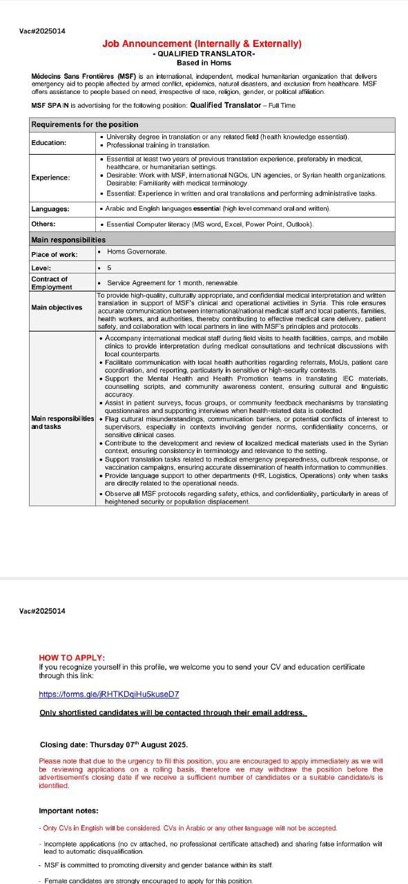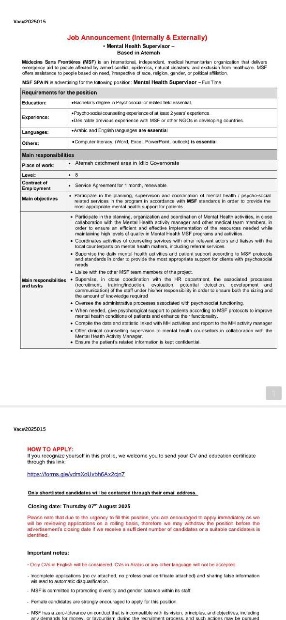 وظائف شاغرة في منظمات إنسانية بسوريا – قدم الآن قبل 7 أغسطس 2025