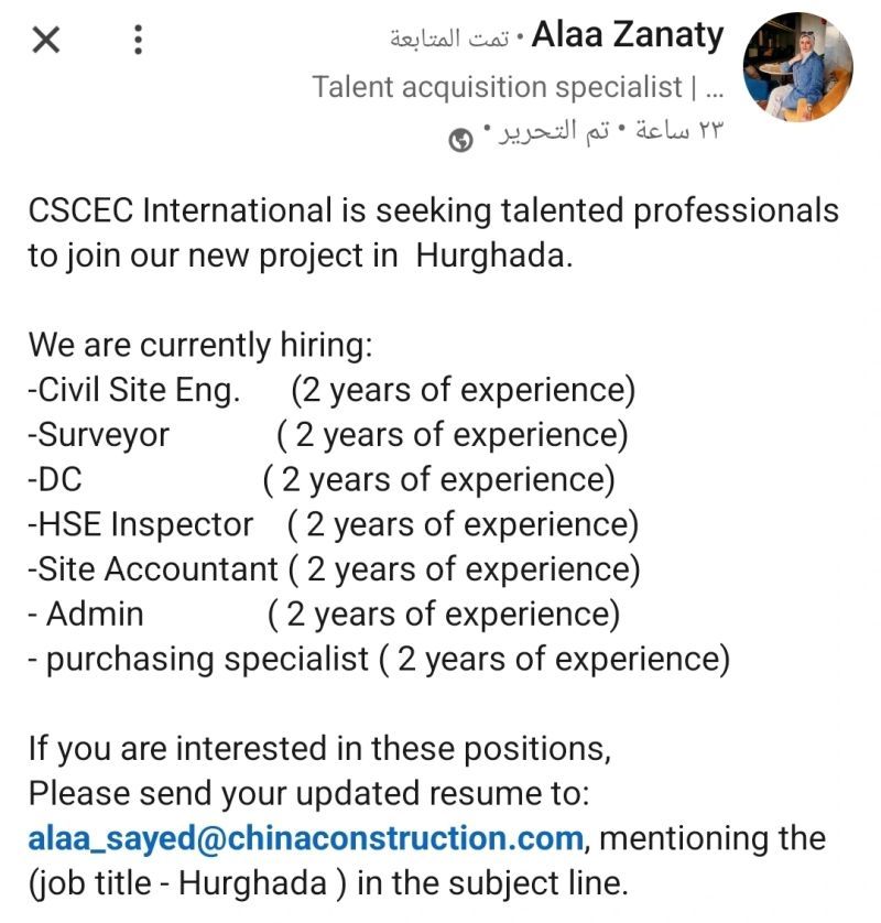 📌 العنوان: [Job Title – Hurghada]