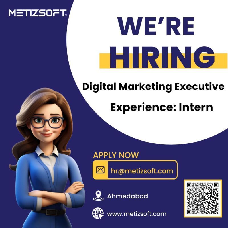 تعلن Metizsoft عن فتح باب التقديم لوظيفة Digital Marketing Executive – Intern للعمل ضمن فريق التسويق الرقمي في مقر الشركة بمدينة أحمد آباد.