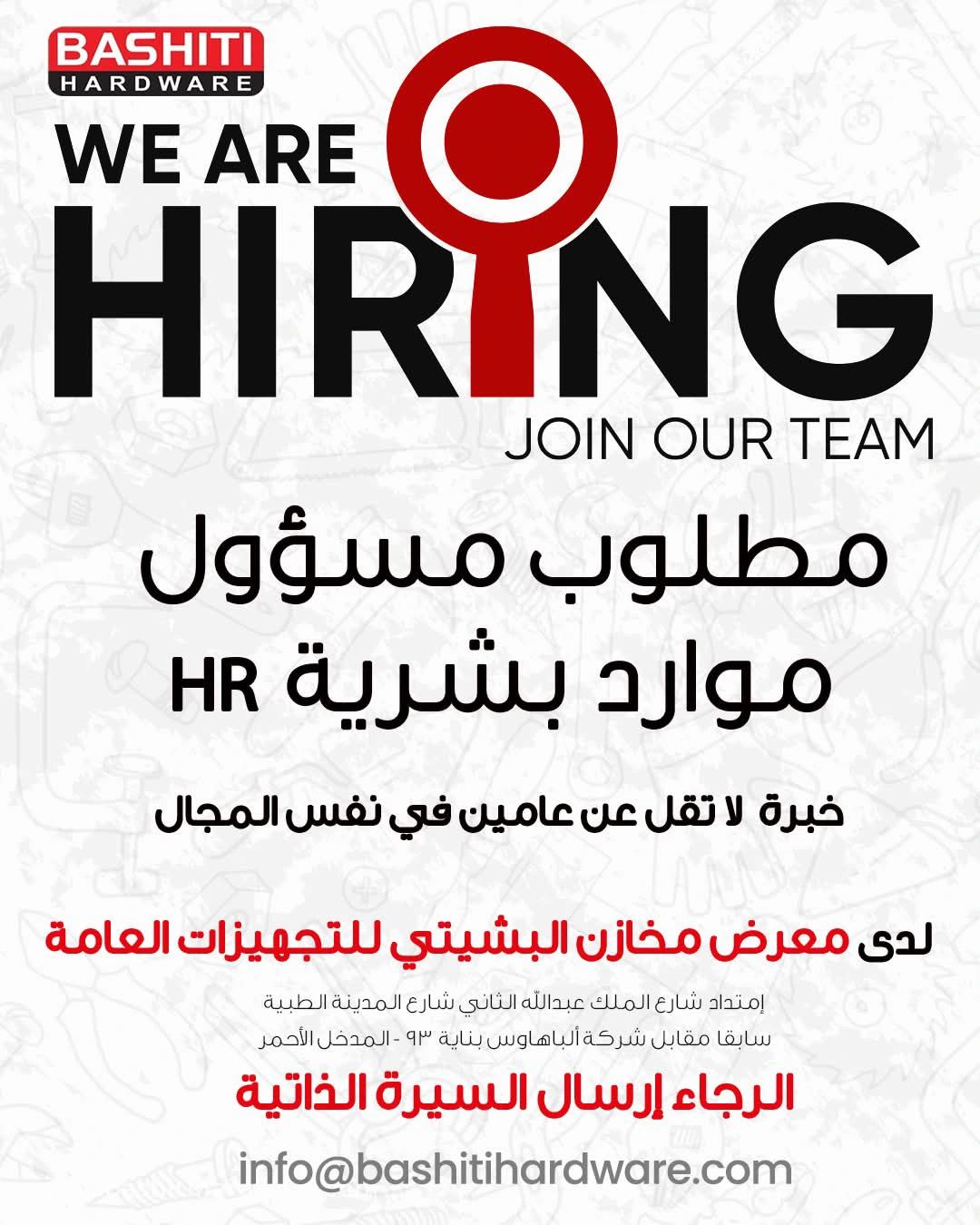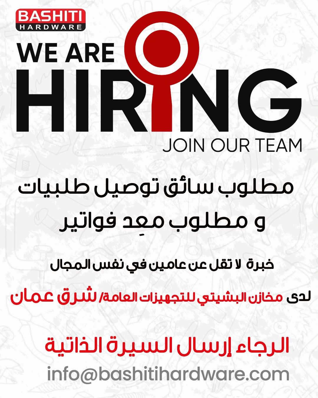 مخازن البشيتي للتجهيزات العامة تعلن عن توفر فرص عمل شاغرة في عمان – الأردن للمؤهلات التالية: