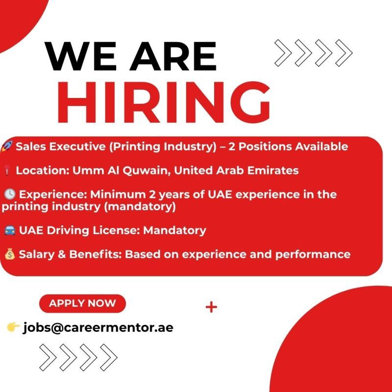 فرصة عمل: مطلوب تنفيذي مبيعات في صناعة الطباعة بالإمارات – وظيفتان شاغرتان