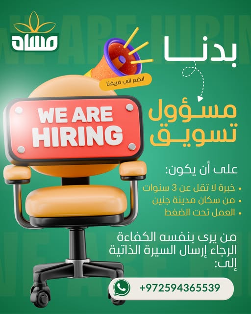 وظائف مسؤول تسويق في شركة محامص مسّاد – جنين 2025