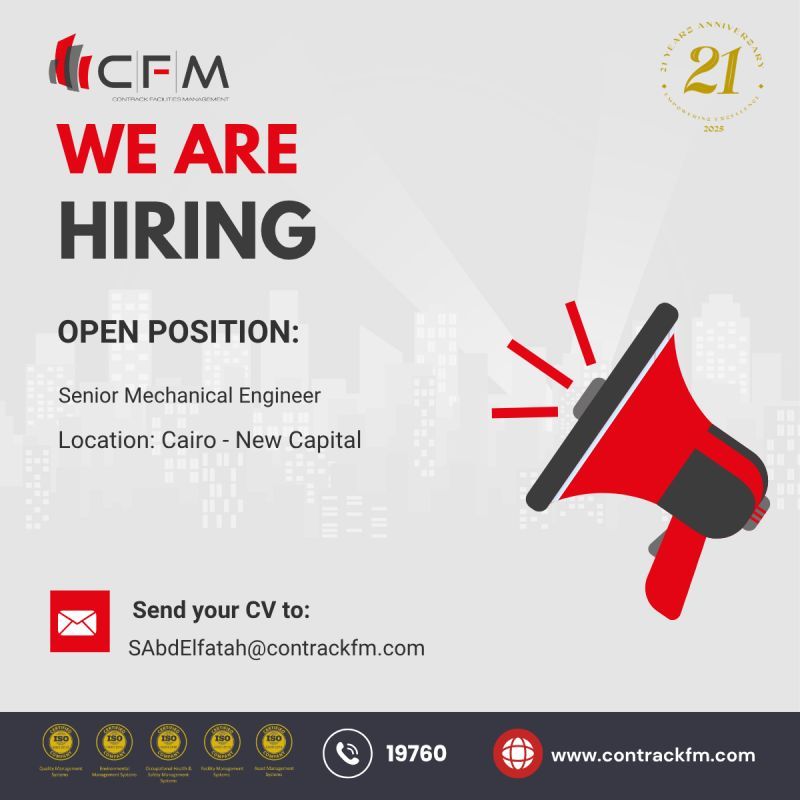 وظائف Senior Mechanical Engineer في القاهرة العاصمة الإدارية | التقديم متاح الآن