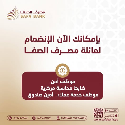 🚨 فرص توظيف لدى مصرف الصفا – فلسطين 🚨