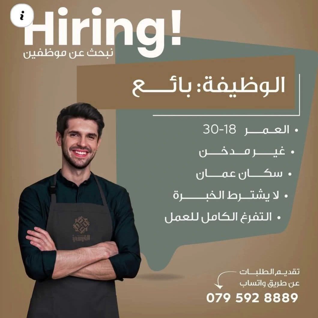 نبحث عن بائع للانضمام إلى فريق العمل في عمّان