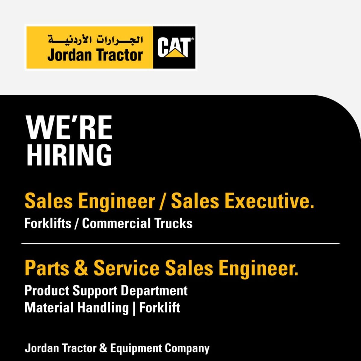 إذا كنت تطمح للعمل في بيئة احترافية ضمن قطاع معدات المناولة والمركبات التجارية، فإن Jordan Tractor تفتح باب الانضمام إلى فريقها المميز.