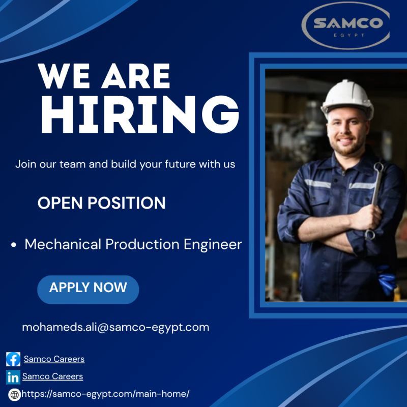 تعلن شركة سامكو مصر عن حاجتها إلى مهندس إنتاج ميكانيكي للانضمام إلى فريقها وتحقيق تطور مهني حقيقي داخل بيئة عمل احترافية.