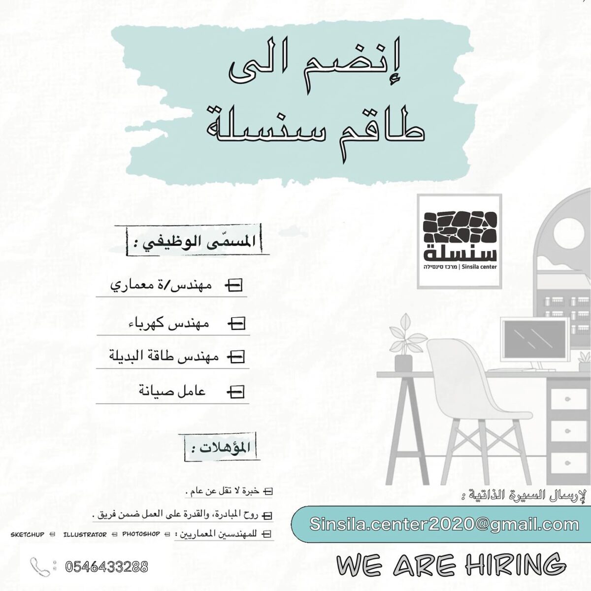 فرص عمل في القدس – وظائف هندسية وصيانة في مركز سنسلة