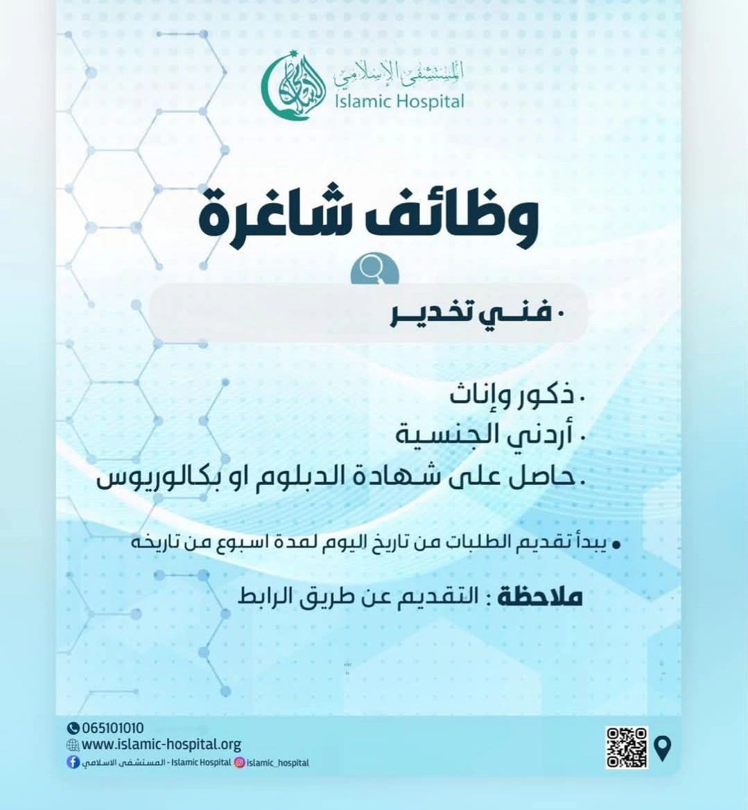 فرصة توظيف لدى المستشفى الإسلامي – فني تخدير