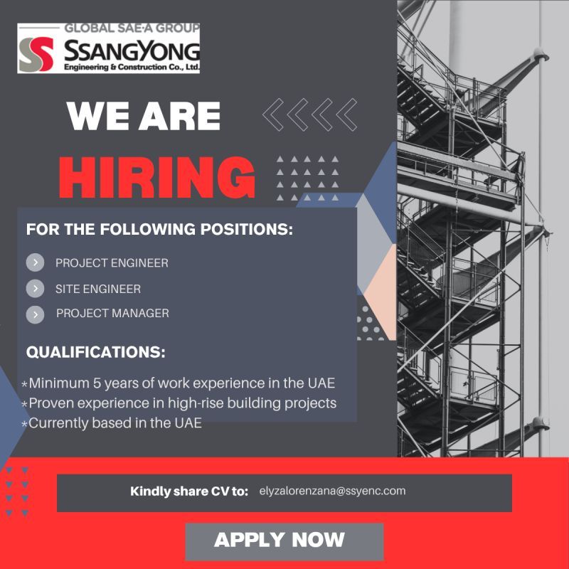 تعلن إحدى الشركات الكبرى المتخصصة في الإنشاءات والمشاريع الهندسية في دولة الإمارات عن توفر شواغر هندسية مميزة، وتدعو أصحاب الخبرة للانضمام إلى فريق عمل احترافي يعمل على مشاريع رفيعة المستوى.