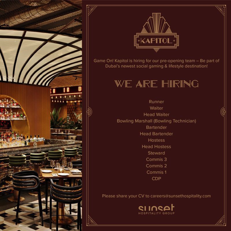 وظائف متعددة في دبي لدى KapitOL من Sunset Hospitality – قدم الآن