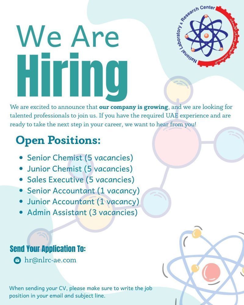 تعد هذه الوظائف من أفضل الفرص المتاحة حاليًا في قطاع الأبحاث والعلوم داخل الإمارات، خاصة للمتخصصين في الكيمياء والمحاسبة والمبيعات. يشترط توفر خبرة داخل الدولة، مما يجعلها مناسبة للباحثين عن تطوير مهني سريع ضمن بيئة علمية متقدمة.