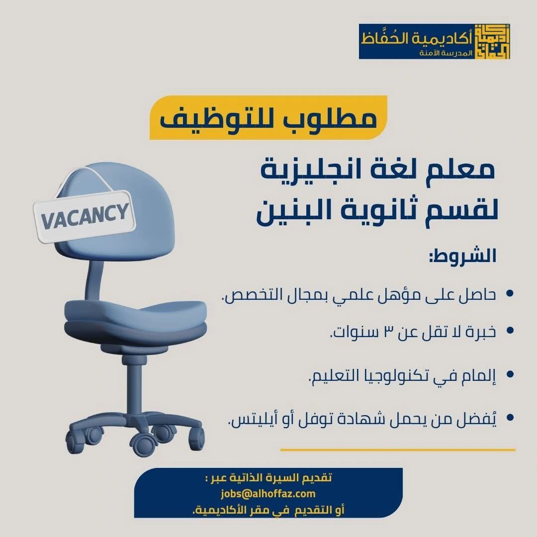 مطلوب للتوظيف – معلم لغة إنجليزية لقسم ثانوية البنين