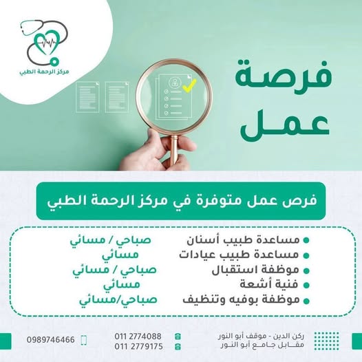 إذا كنتِ تمتلكين الكفاءة والخبرة في العمل الطبي أو الإداري، فإن هذه فرصتكِ للانضمام إلى مركز مهني متميز ضمن أجواء داعمة ومحفزة.