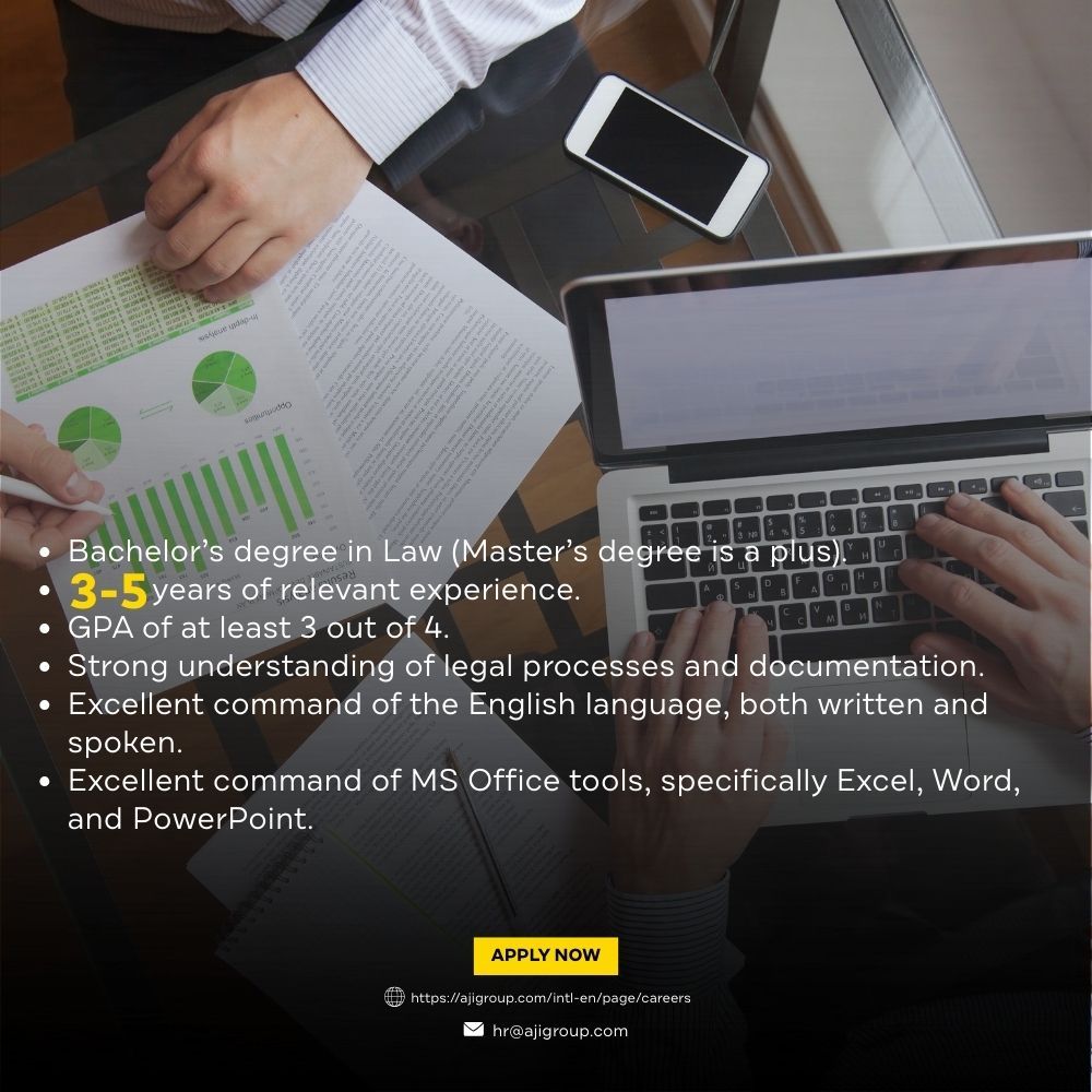 توفر هذه الوظيفة فرصة للمتخصصين في القانون للانضمام إلى AJi Group في عمان، مع صقل مهاراتهم القانونية والإدارية والعمل ضمن بيئة مهنية احترافية.