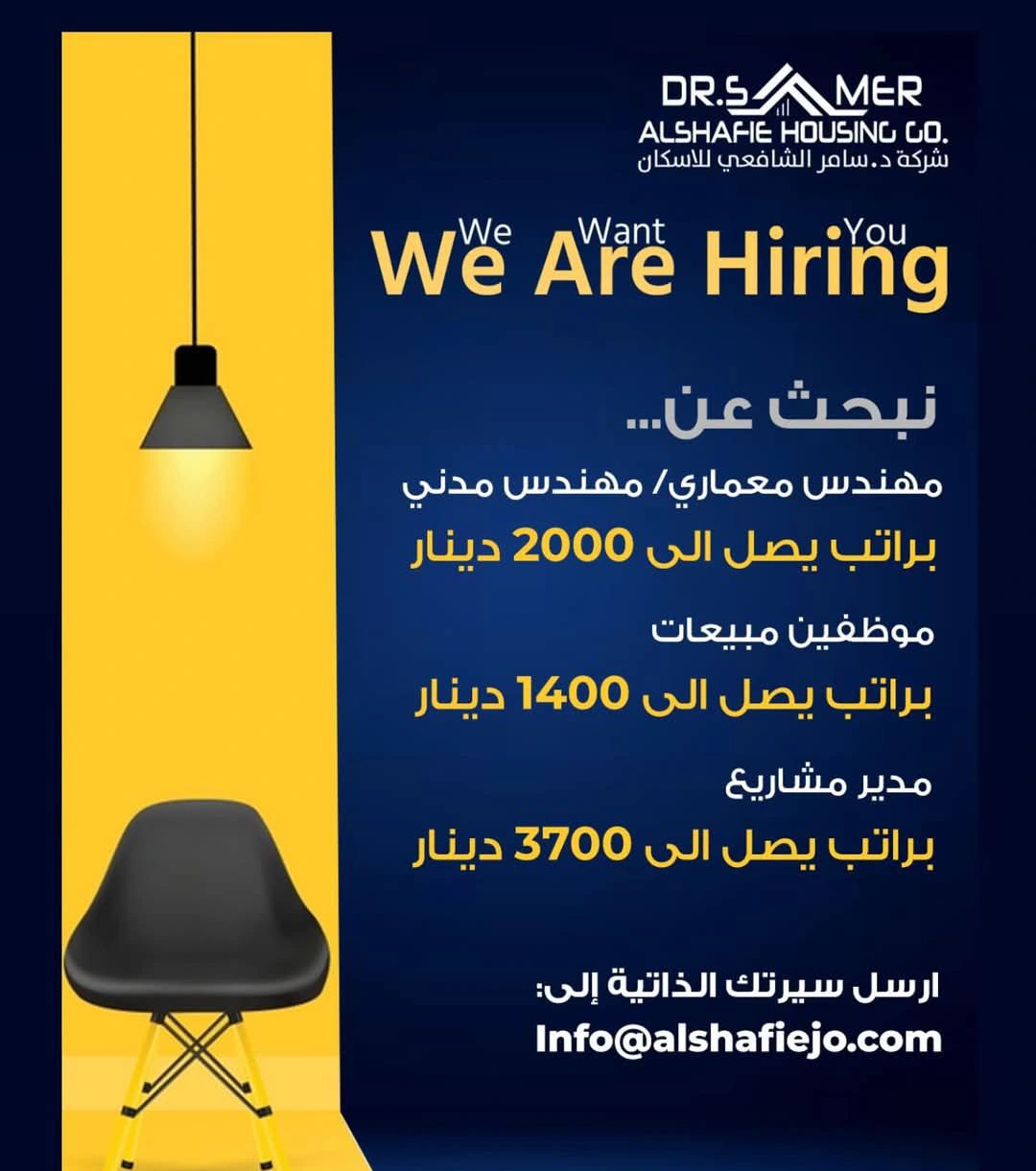 نعلن عن فرص توظيف مميزة في شركة د. سامر الشافعي للإسكان