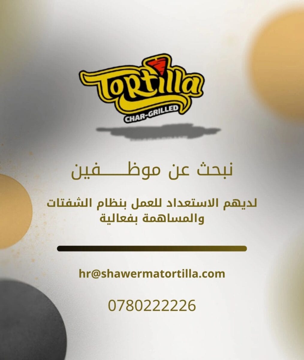 🔸 فرص عمل شاغرة لدى Tortilla Shawerma