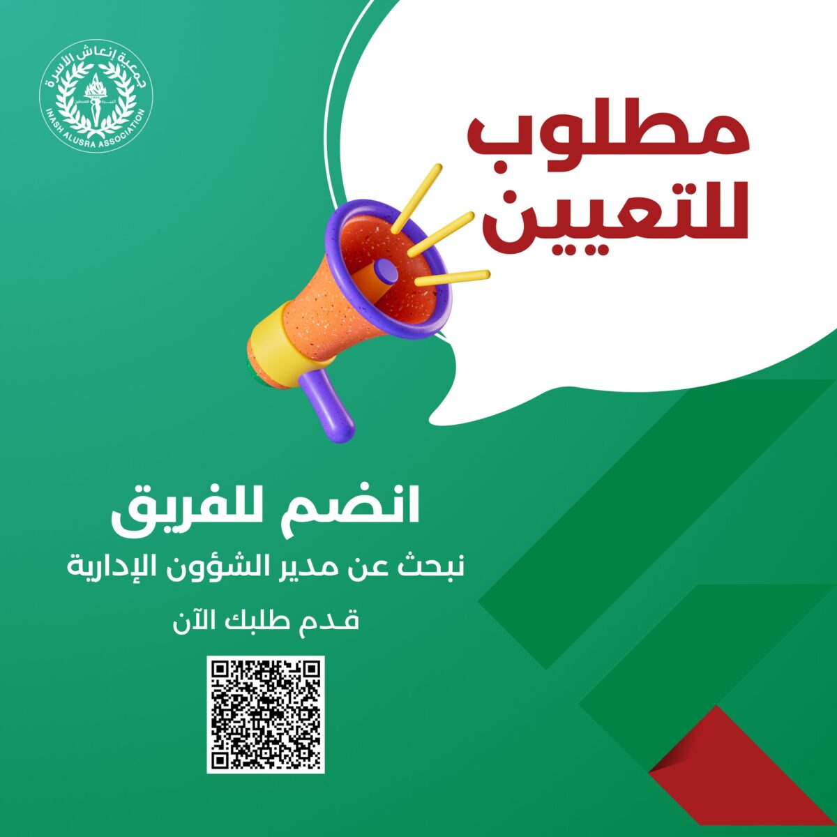 📢 فرصة عمل مميزة | مدير الشؤون الإدارية – جمعية إنعاش الأسرة