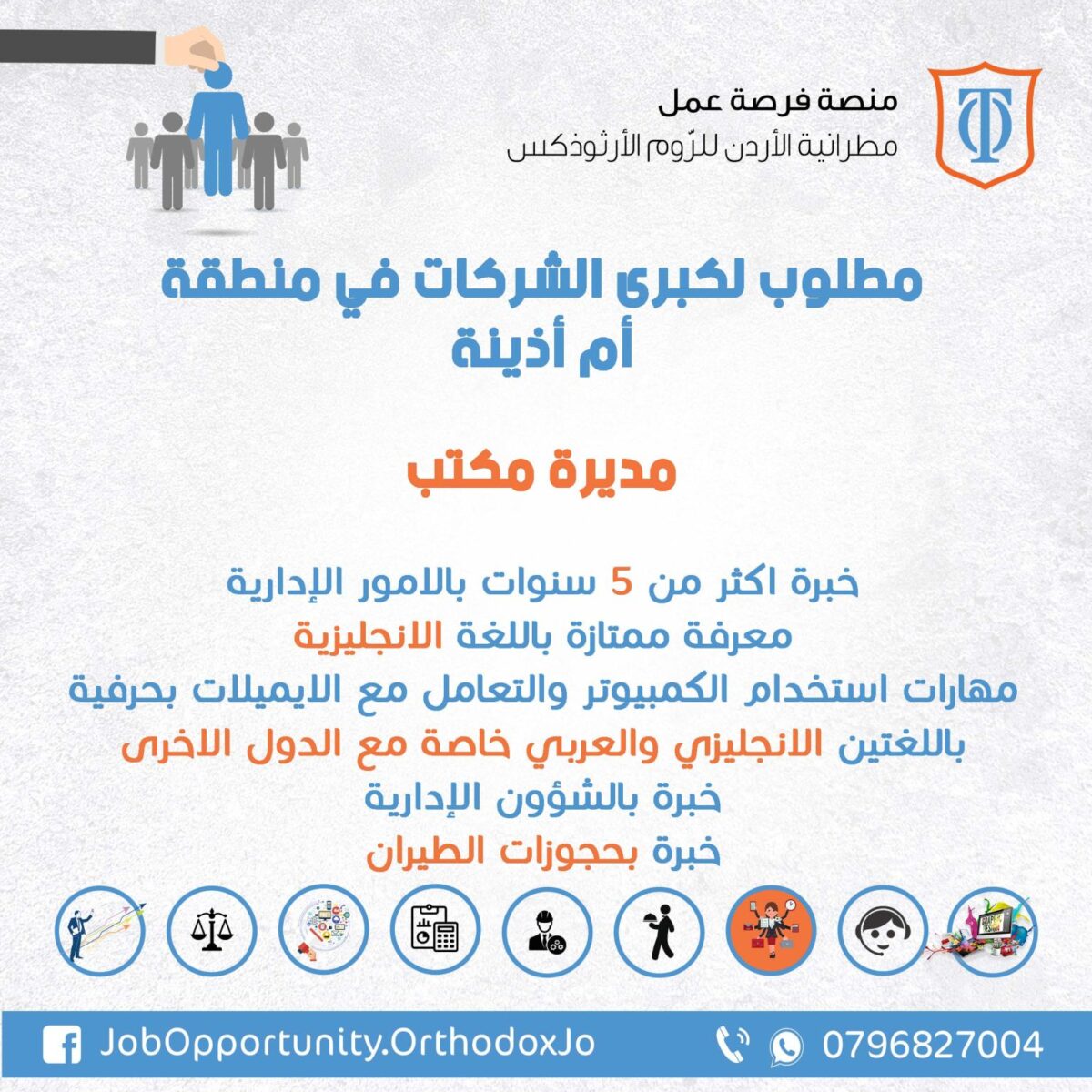 📌 الوظيفة الثانية: مديرة مكتب – منطقة أم أذينة
