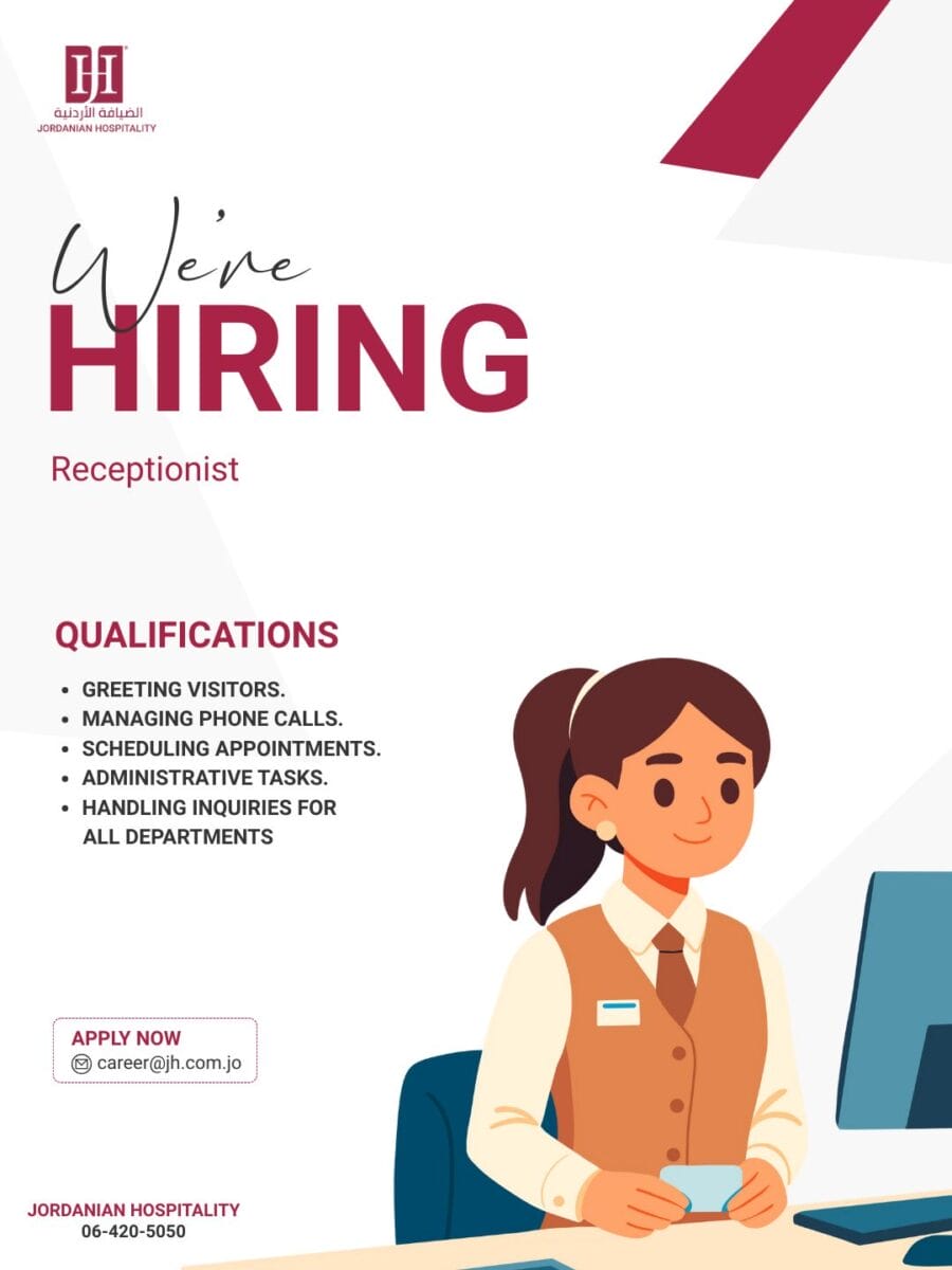فرصة عمل مثيرة: موظف استقبال – انضم لفريقنا في Jordanian Hospitality