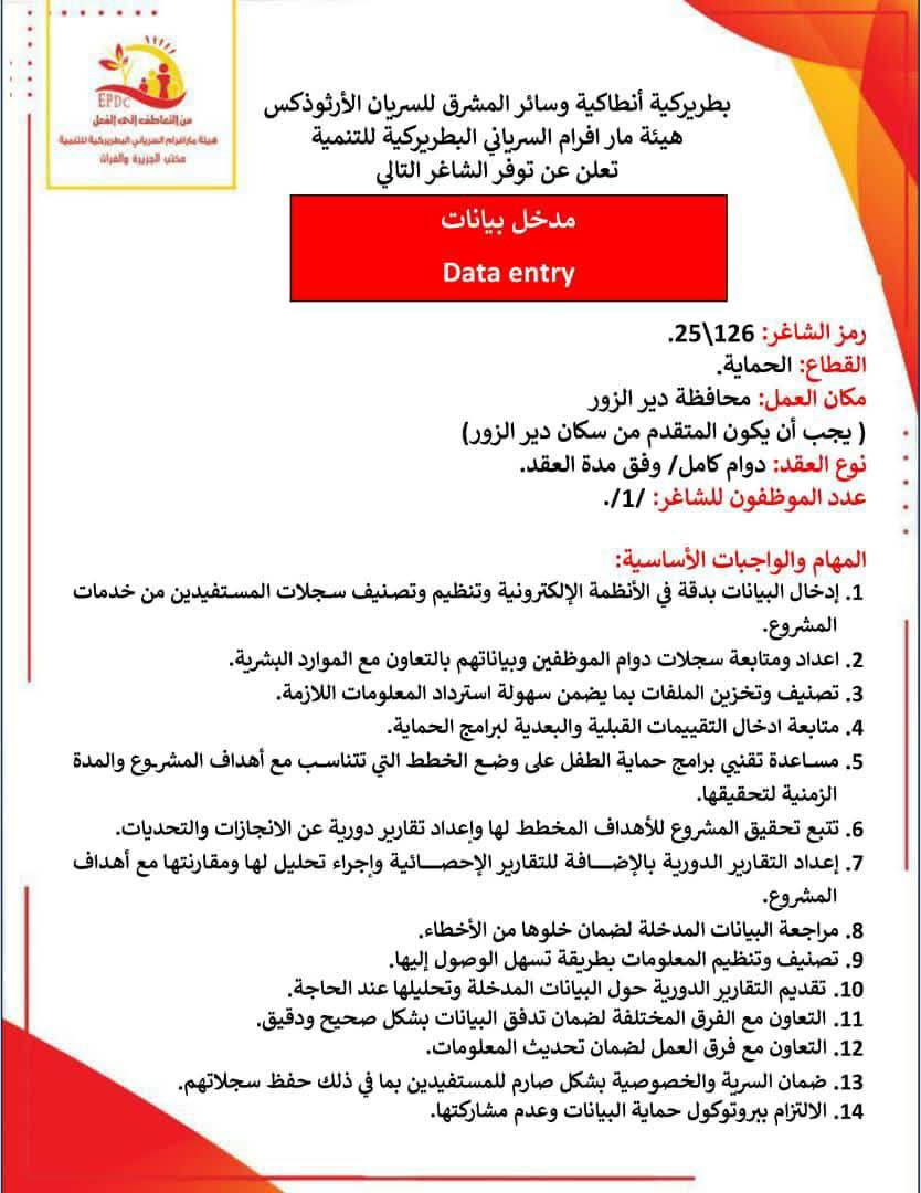 محافظة دير الزور (يشترط أن يكون المتقدم من سكان المنطقة)