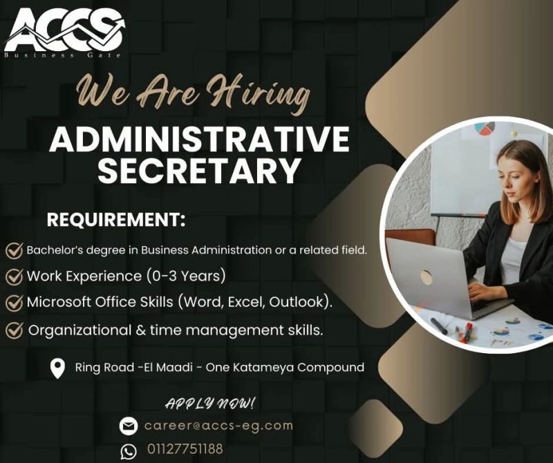 شركة ACCS Business Gate تعلن عن فتح باب التوظيف لوظيفة Administrative Secretary ضمن فريق عمل ديناميكي وفرص نمو حقيقية.
