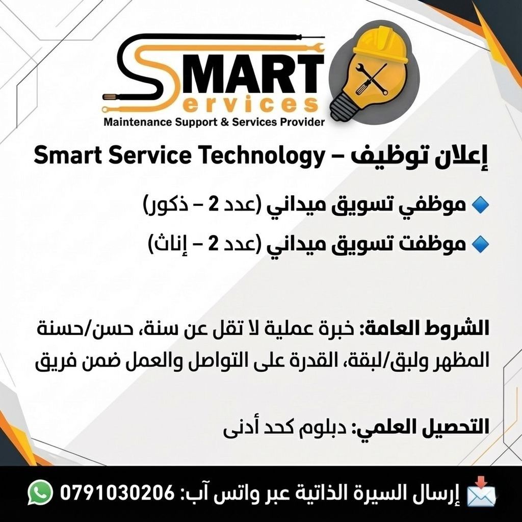 🚀 فرصة عمل مميزة في Smart Service Jo! 🚀