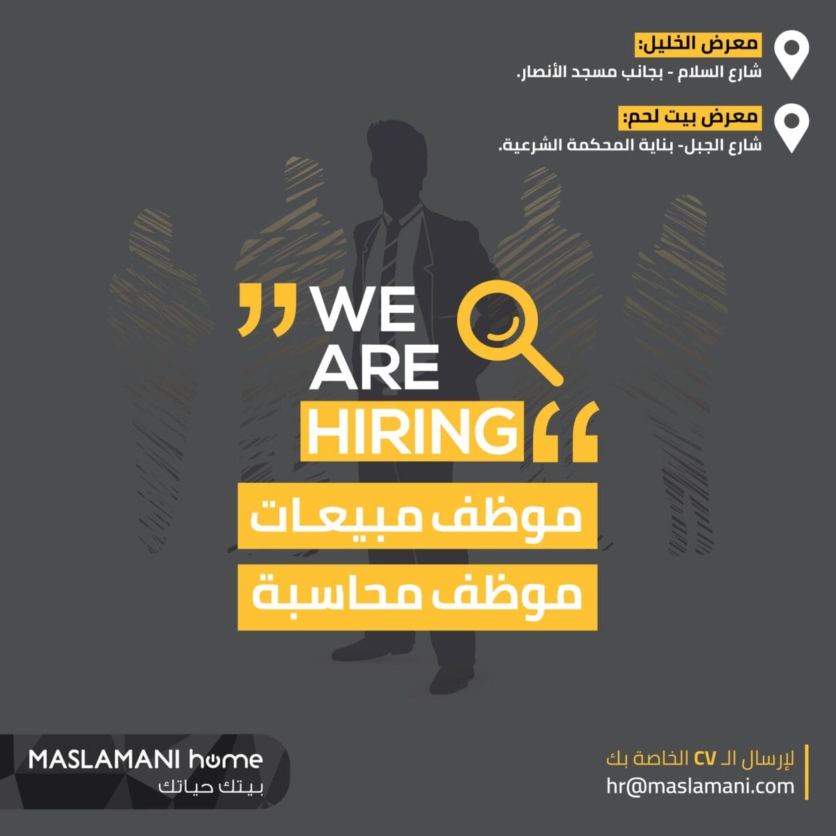 فرصة عمل بيت لحم والخليل – وظائف محاسبة ومبيعات بشركة المسلماني هوم