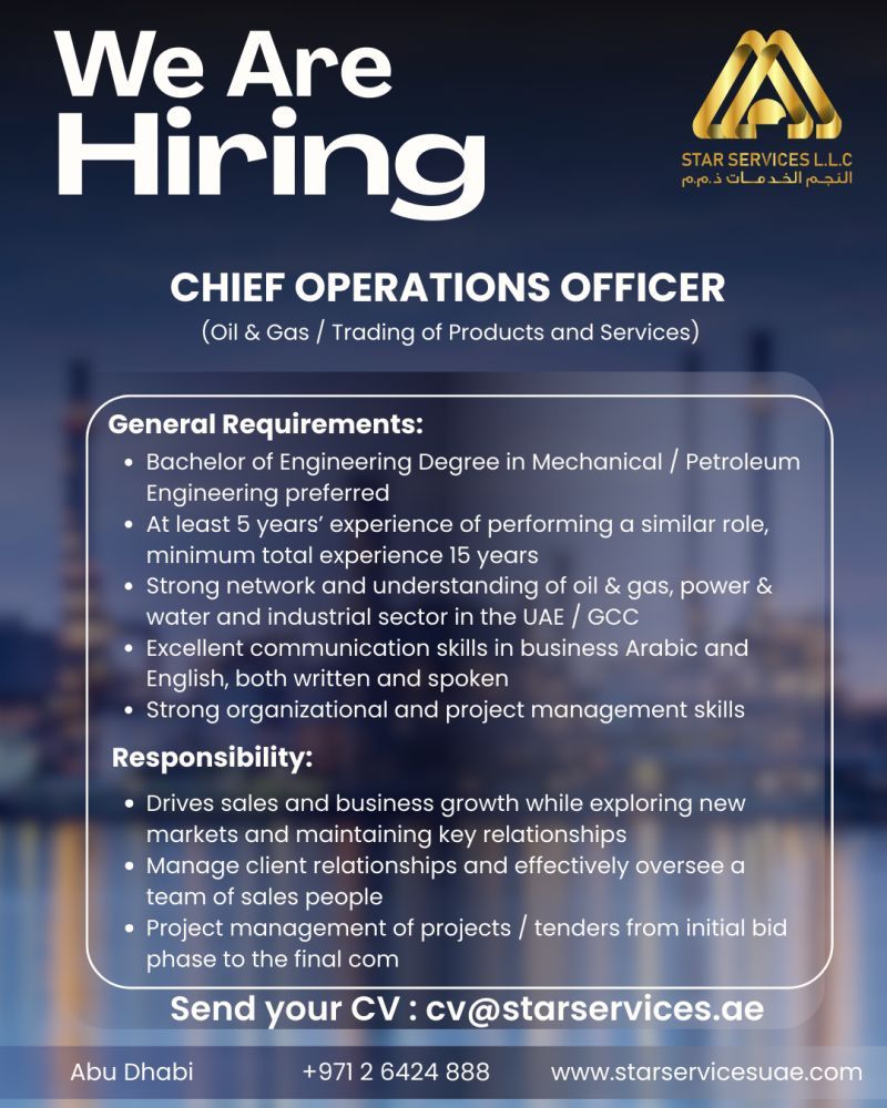 وظيفة مدير عمليات تنفيذي COO في أبوظبي، وظائف قيادية في قطاع النفط والغاز، وظائف هندسية إدارية في الإمارات، وظائف إدارة عليا في الطاقة، فرص عمل COO في الخليج.