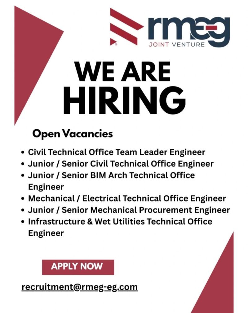 تُعد وظائف Technical Office وBIM من أكثر الوظائف الهندسية طلبًا في سوق العمل، خاصة في مجالات الإنشاءات، البنية التحتية، الميكانيكا، الكهرباء، والمرافق. الانضمام إلى شركة مثل RMEG JV يمنحك خبرة عملية قوية وفرصة حقيقية لبناء مسار مهني ناجح داخل مصر.