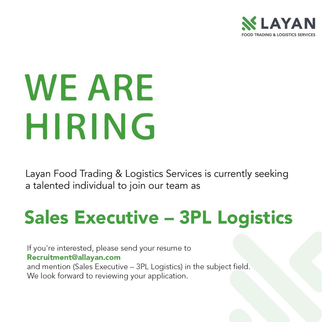 وظائف مبيعات لوجستية 3PL متاحة الآن لدى Layan Food Trading and Logistics Services للانضمام إلى فريق لوجستي رائد يعتمد على الأداء والنتائج.