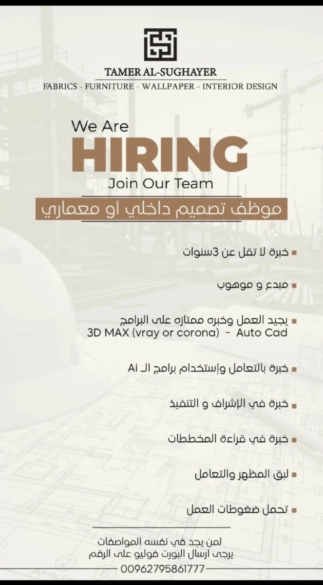 فرصتك الآن للانضمام إلى فريق احترافي في مجال التصميم الداخلي والعمارة 🚀
