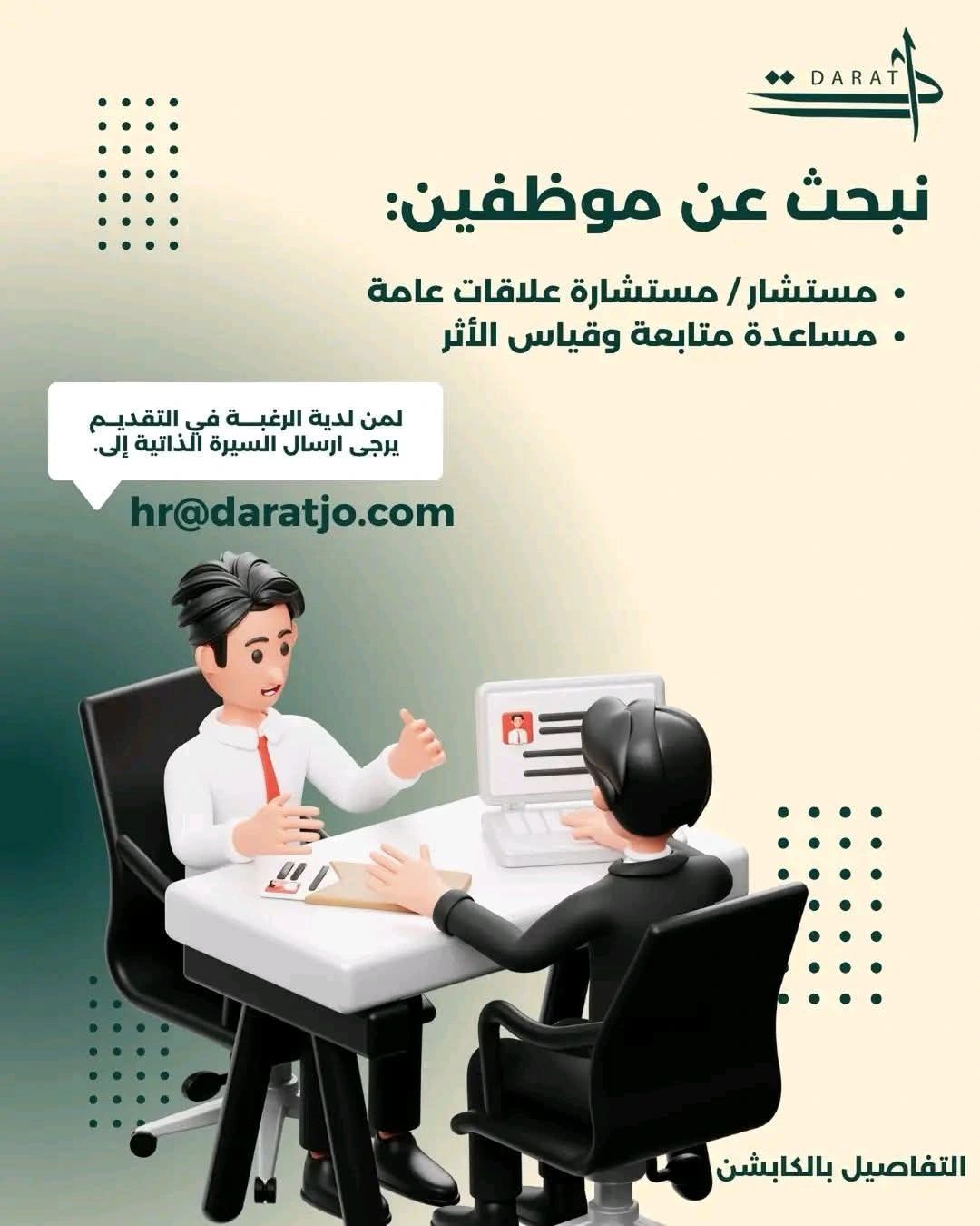 وظائف شاغرة – مستشار علاقات عامة ومساعد متابعة وقياس أثر 2026