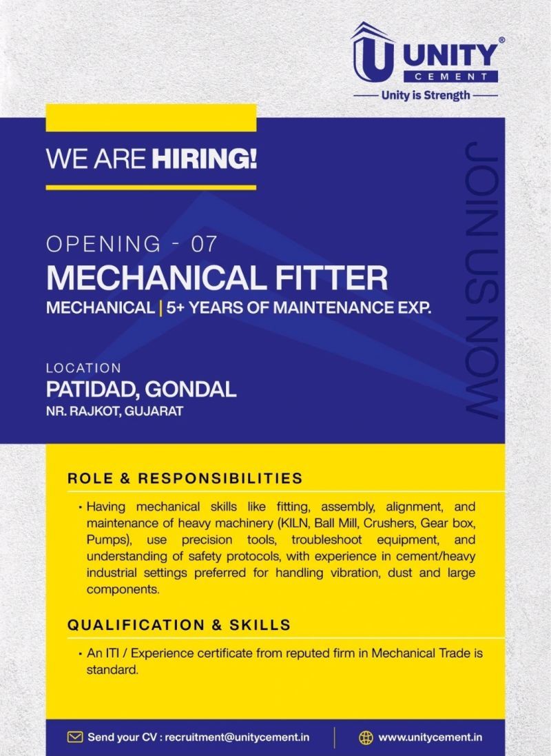 🔧 وظائف Mechanical Fitter في Unity Cement – التوظيف متاح الآن