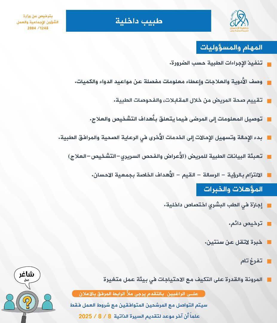 🏢 جهة العمل: جمعية الإحسان الخيرية التنموية