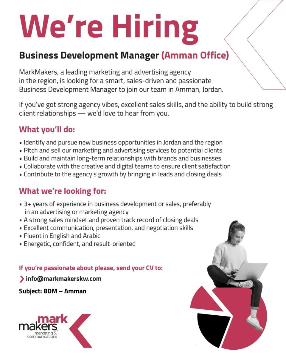 💼 المسمى الوظيفي: مدير تطوير أعمال – عمان