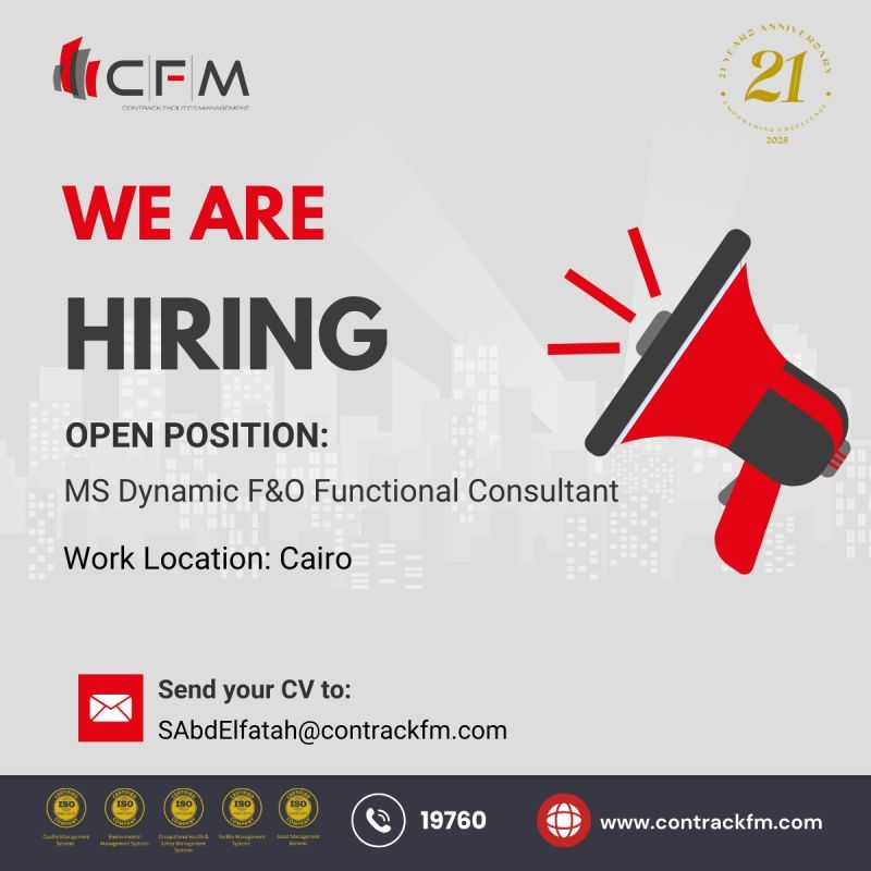 تعلن شركة CFM – Contract Facilities Management عن حاجتها لتعيين MS Dynamics F&O Functional Consultant للانضمام إلى فريقها المتخصص في حلول ERP.
