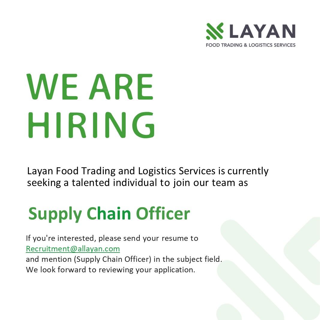 شركة Layan Food Trading تبحث عن Supply Chain Officer ملتزم ونتائجية للانضمام لفريق العمل في عمان – اليادودة.