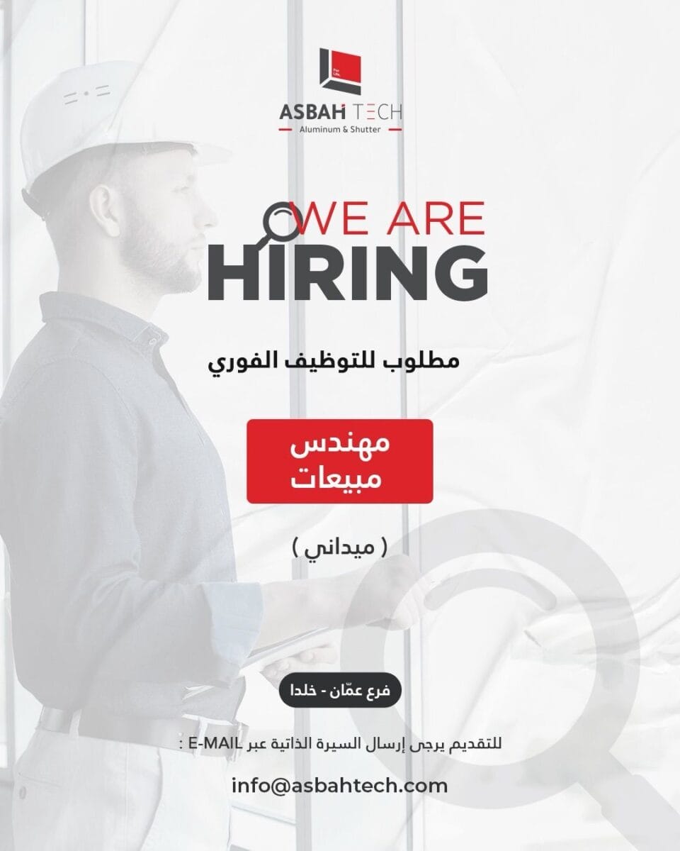 تُعلن شركة الأصبح التقنية عن حاجتها لتعيين مهندس مبيعات للانضمام إلى فريقها، ضمن بيئة عمل احترافية وفرص دخل محفّزة تعتمد على الأداء.