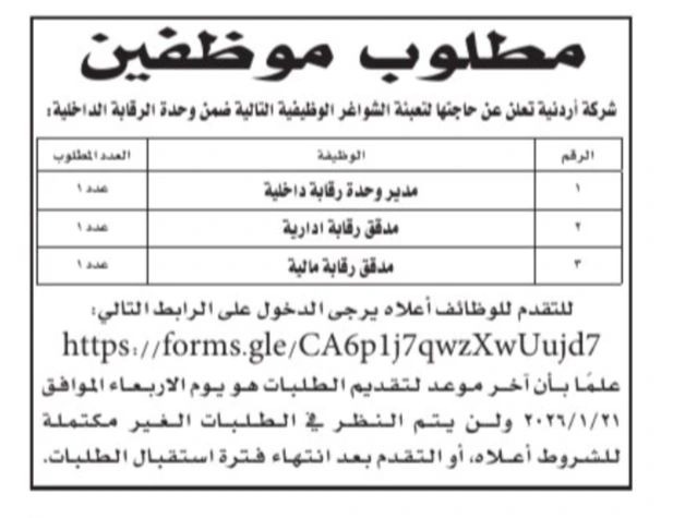 إذا كنت تبحث عن وظائف شاغرة في الأردن أو فرص عمل في الرقابة الداخلية أو وظائف تدقيق مالي وإداري، فهذا الإعلان موجّه لك مباشرة. التقديم متاح الآن لفترة محدودة.